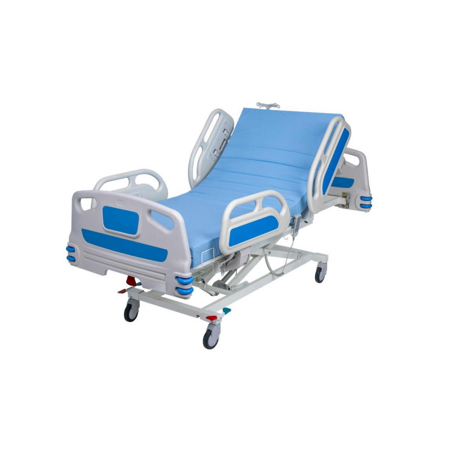 - 4. Motor (Trendelenburg ve Anti-Trendelenburg): Bu gelişmiş medikal özellik, yatağın bir bütün olarak öne veya arkaya doğru eğilmesini sağlar. Doktor tavsiyesiyle kullanılan Trendelenburg (ayakların yukarıda olduğu pozisyon) ve tersi, belirli dolaşım ve solunum rahatsızlıklarında hastanın durumunu iyileştirmek için kritik bir fonksiyondur.